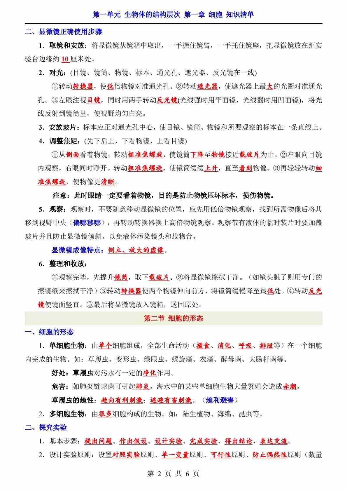 首页 > 全部 > 知识梳理 > 第1单元第1章 细胞(知识清单)