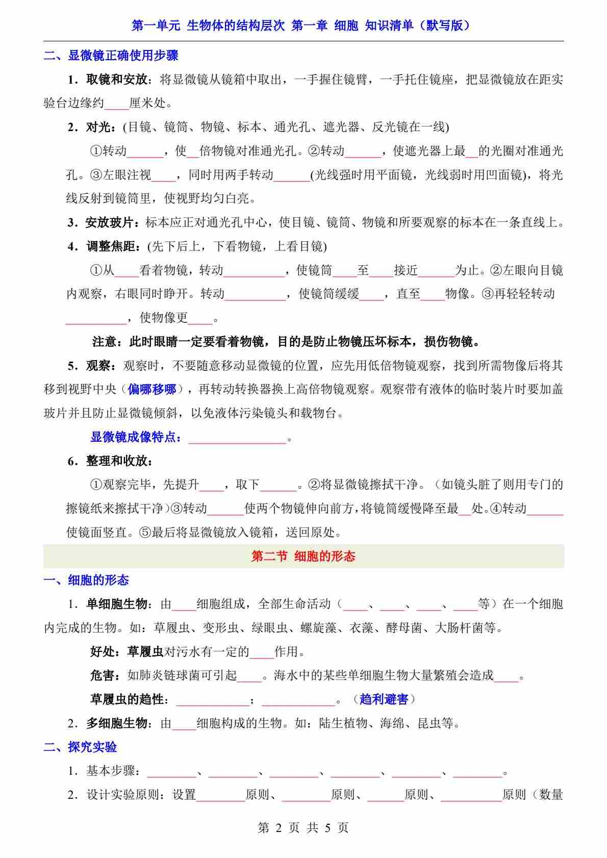 首页 > 全部 > 知识梳理 > 第1单元 第1章 细胞(知识清单-默写版)