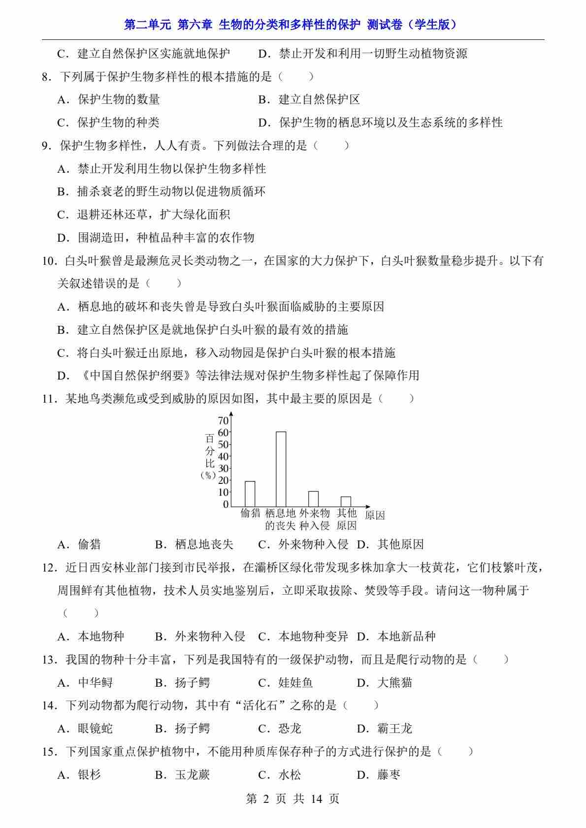 第2单元 第6章 生物的分类和多样性的保护(测试卷)