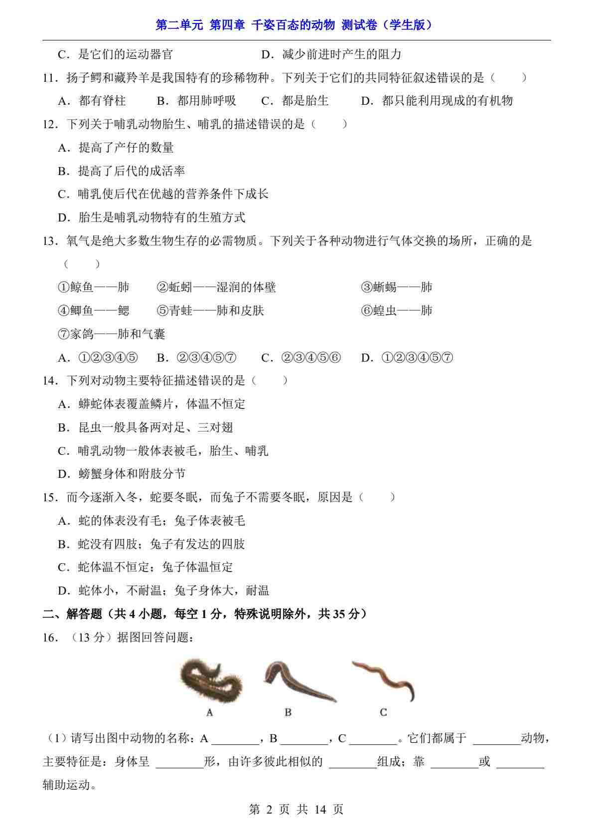 首页 > 全部 > 单元检测 > 第2单元 第4章 千姿百态的动物(测试卷)