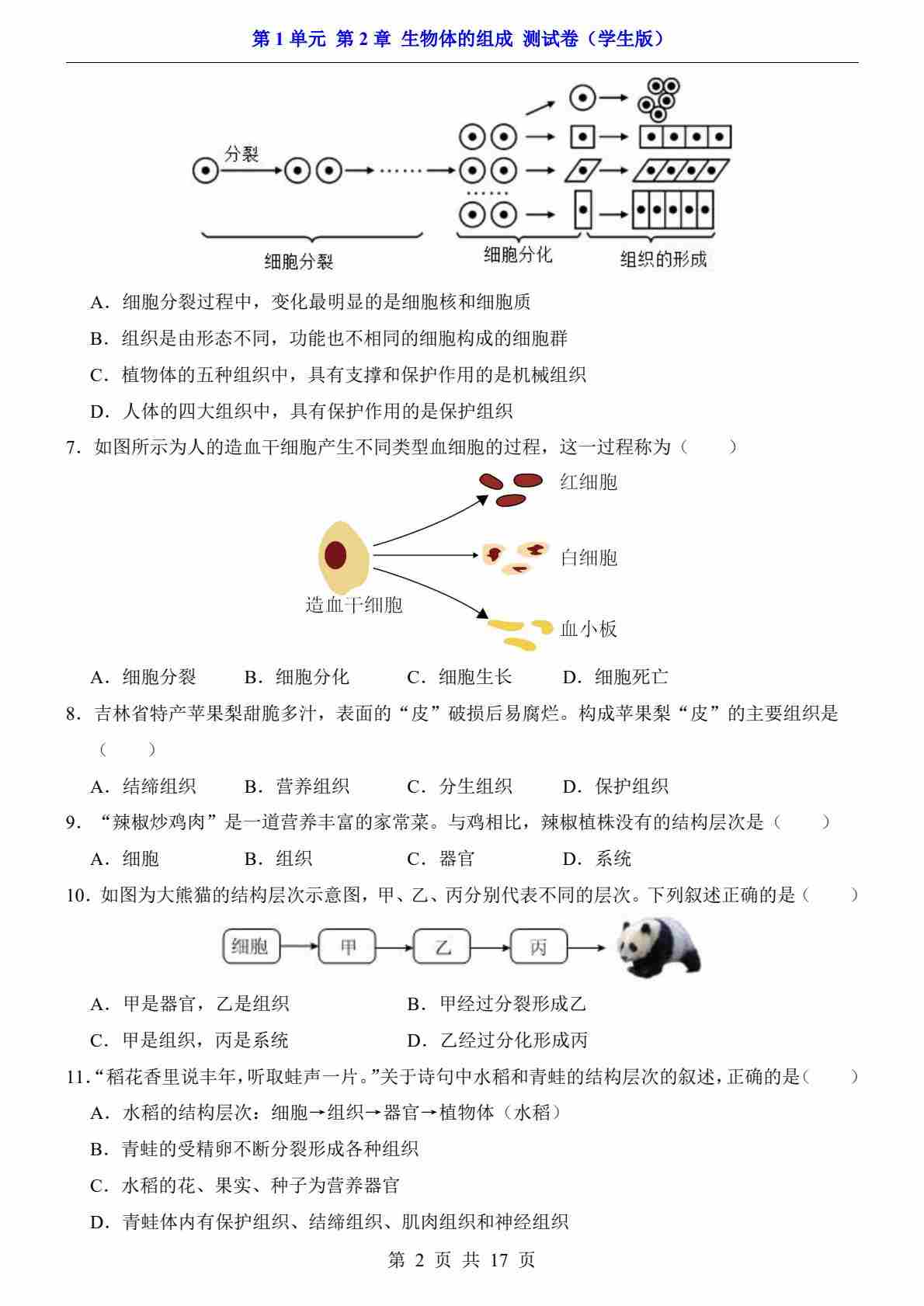 首页 > 全部 > 单元检测 > 第1单元 第2章 生物体的组成(测试卷)