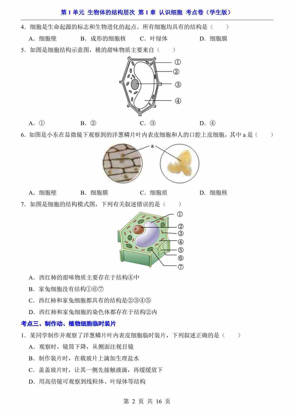 首页 > 全部 > 单元检测 > 第1单元 第1章 认识细胞(考点卷)