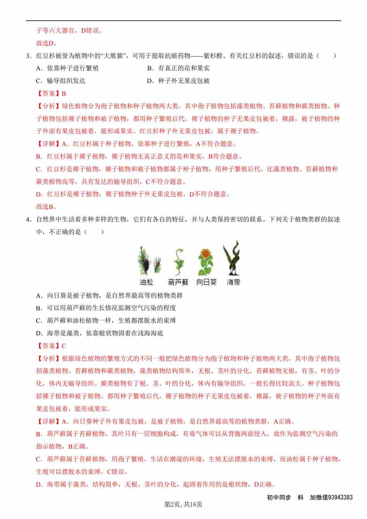首页 > 全部 > 第三次月考 > 七年级苏教生物第三次月考卷(全解全析)