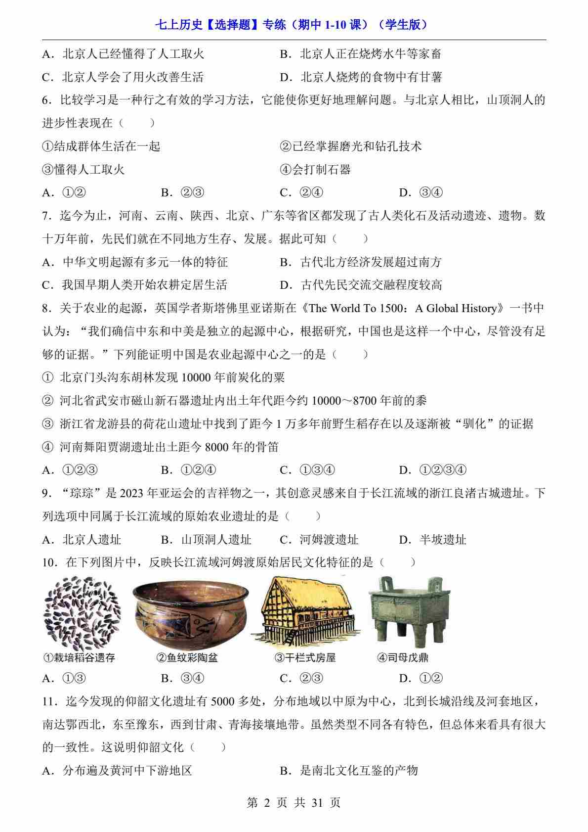 首页 > 全部 > 期中专项题 > 七上历史【选择题】专练(期中1-10课)