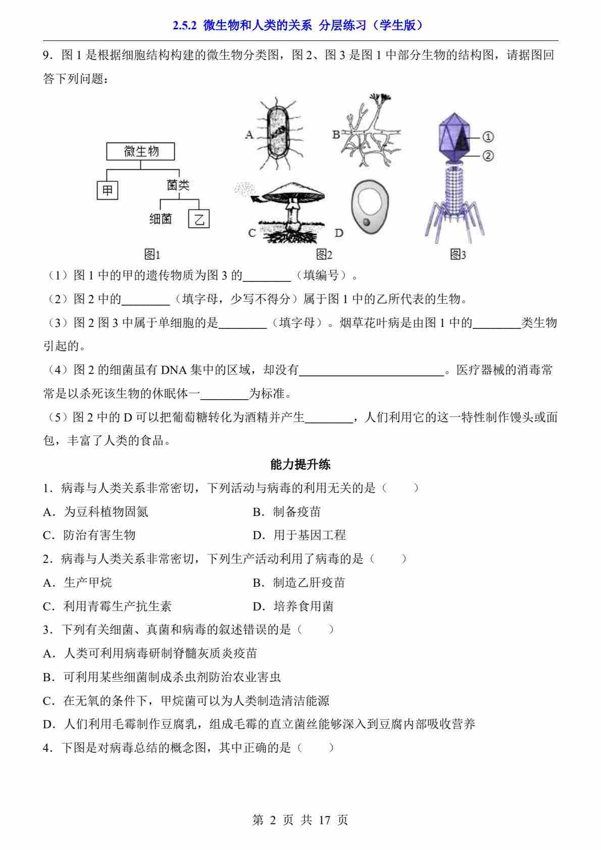 2.5.2 微生物和人类的关系(分层练习)