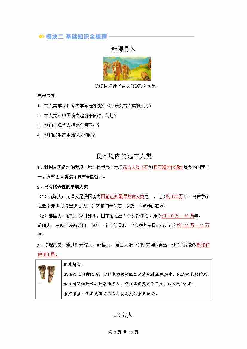 首页 > 全部 > 暑假预习课 > 第1课 远古时期的人类活动(解析版)