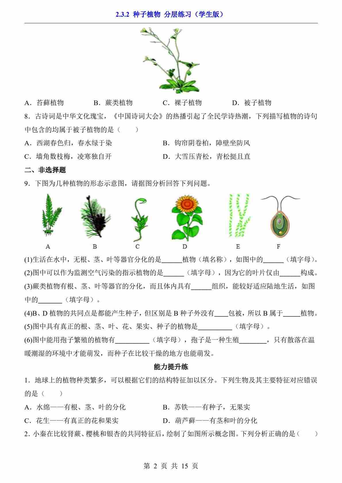 2.3.2 种子植物(分层练习)