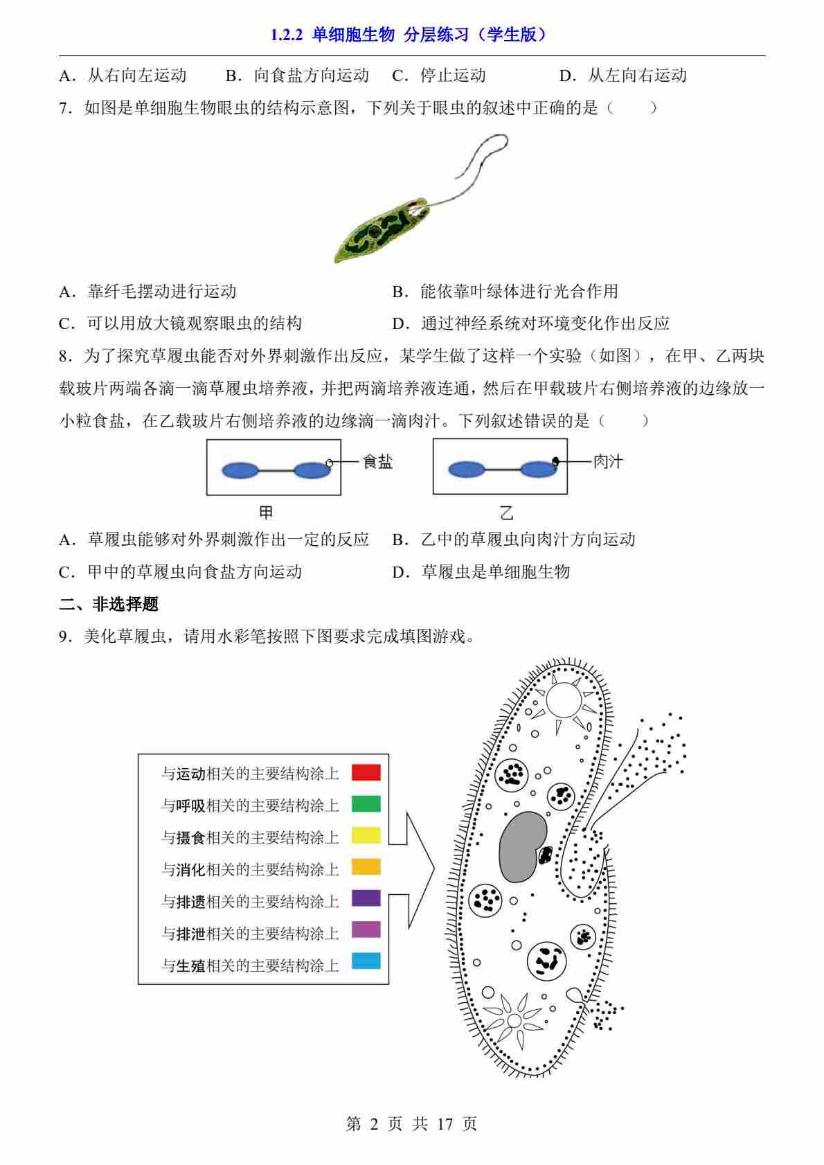 首页 > 全部 > 一课一练 > 1.2.2 单细胞生物(分层练习)