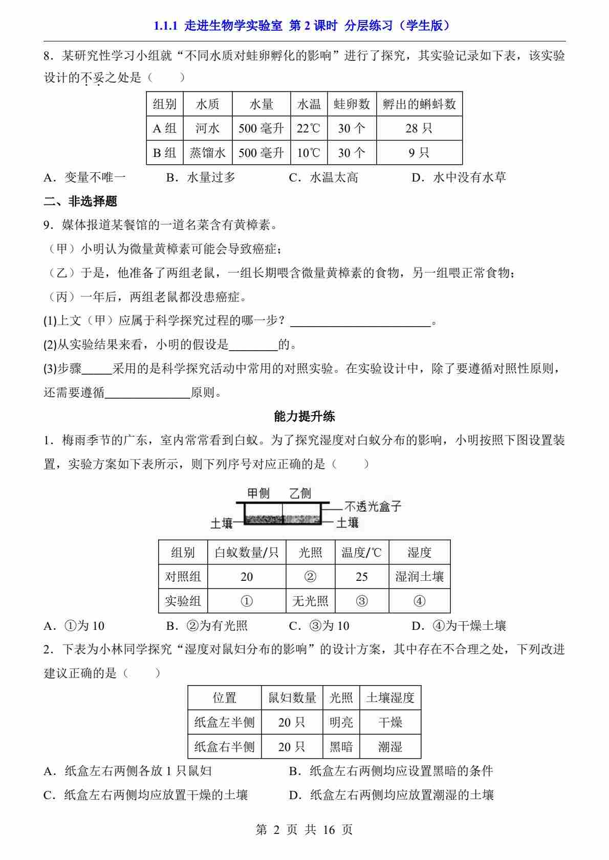 首页 > 全部 > 一课一练 > 1.1.1 走进生物学实验室 第2课时(分层练习)