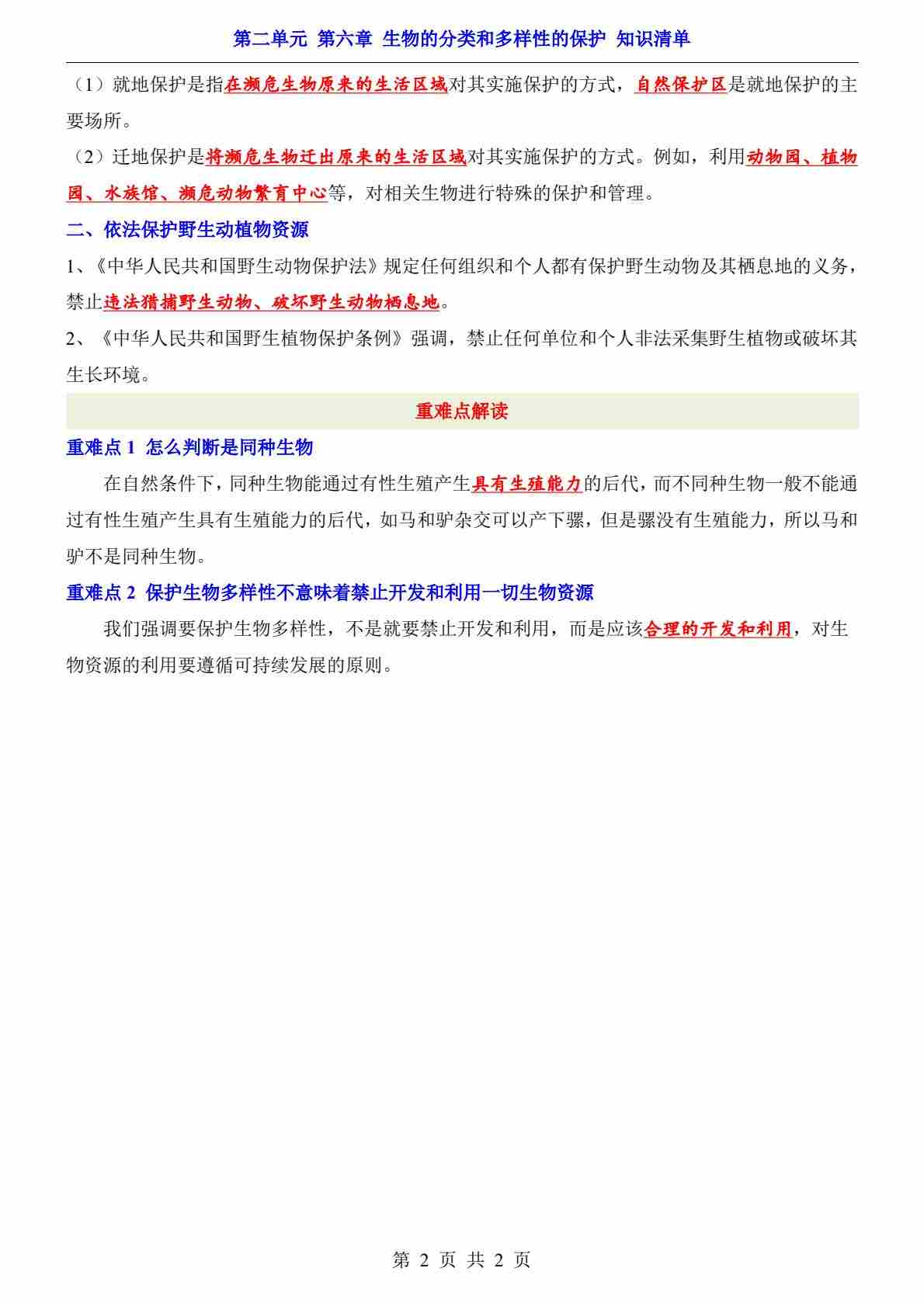 首页 > 全部 > 知识梳理 > 第2单元 第6章 生物的分类和多样性的保护(知识清单)