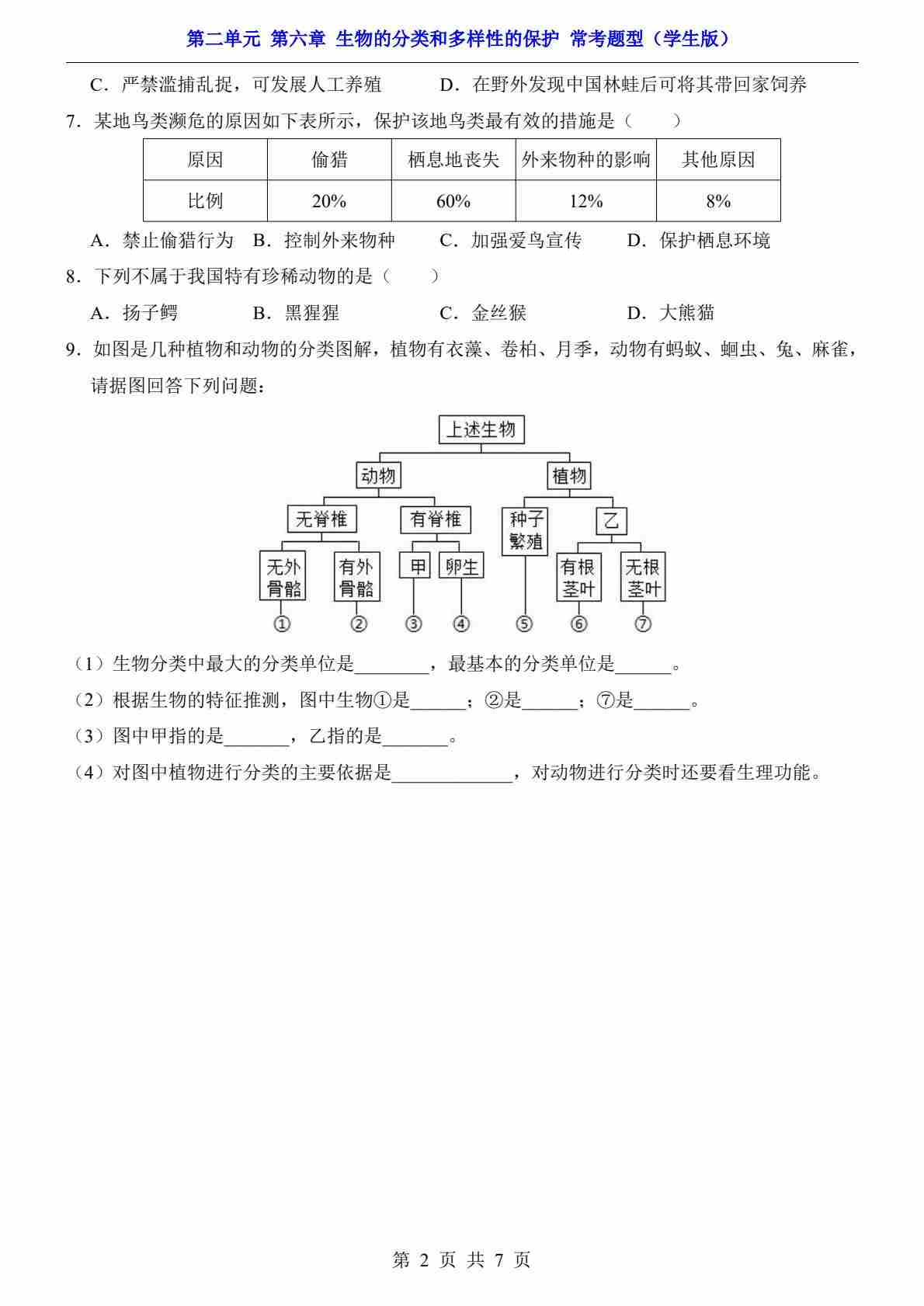第2单元 第6章 生物的分类和多样性的保护(常考题型)