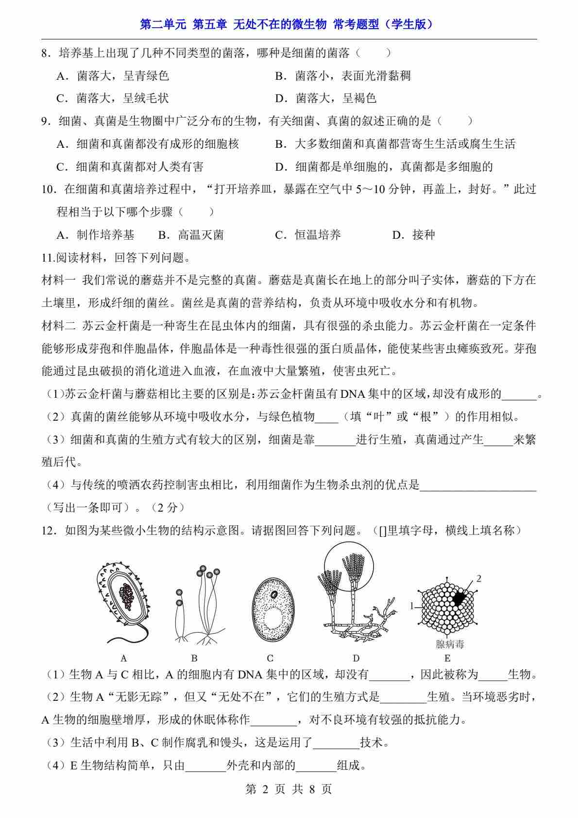 第2单元 第5章 无处不在的微生物(常考题型)