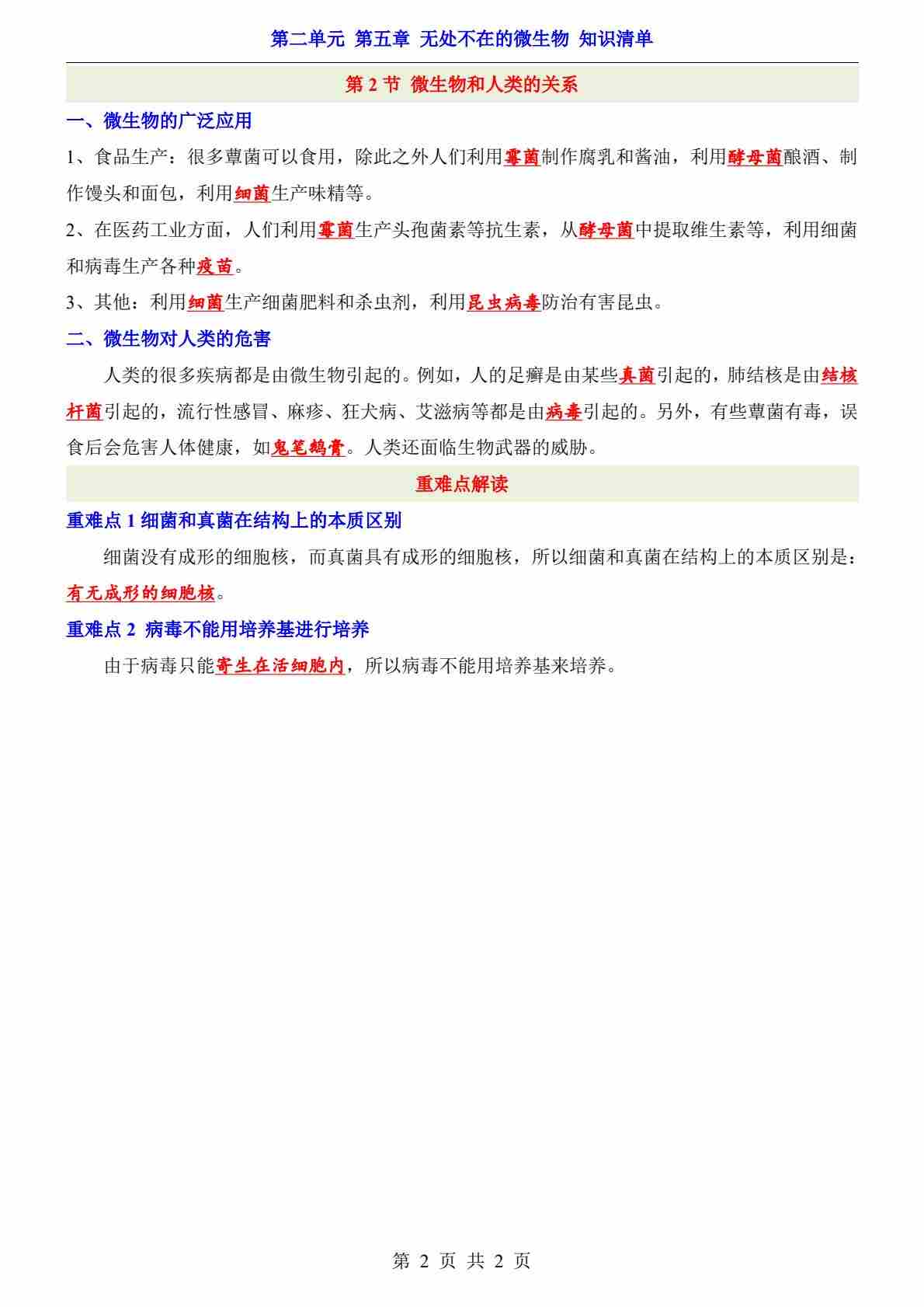 首页 > 全部 > 知识梳理 > 第2单元 第5章 无处不在的微生物(知识清单)