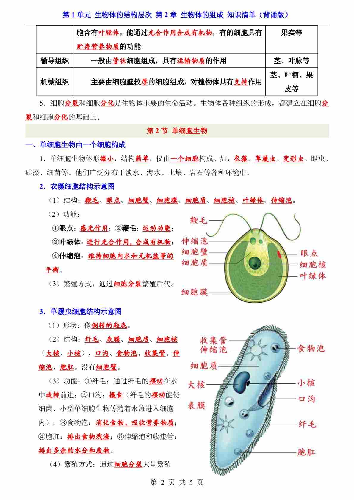 首页 > 全部 > 知识梳理 > 第1单元 第2章 生物体的组成(知识清单-背诵版)