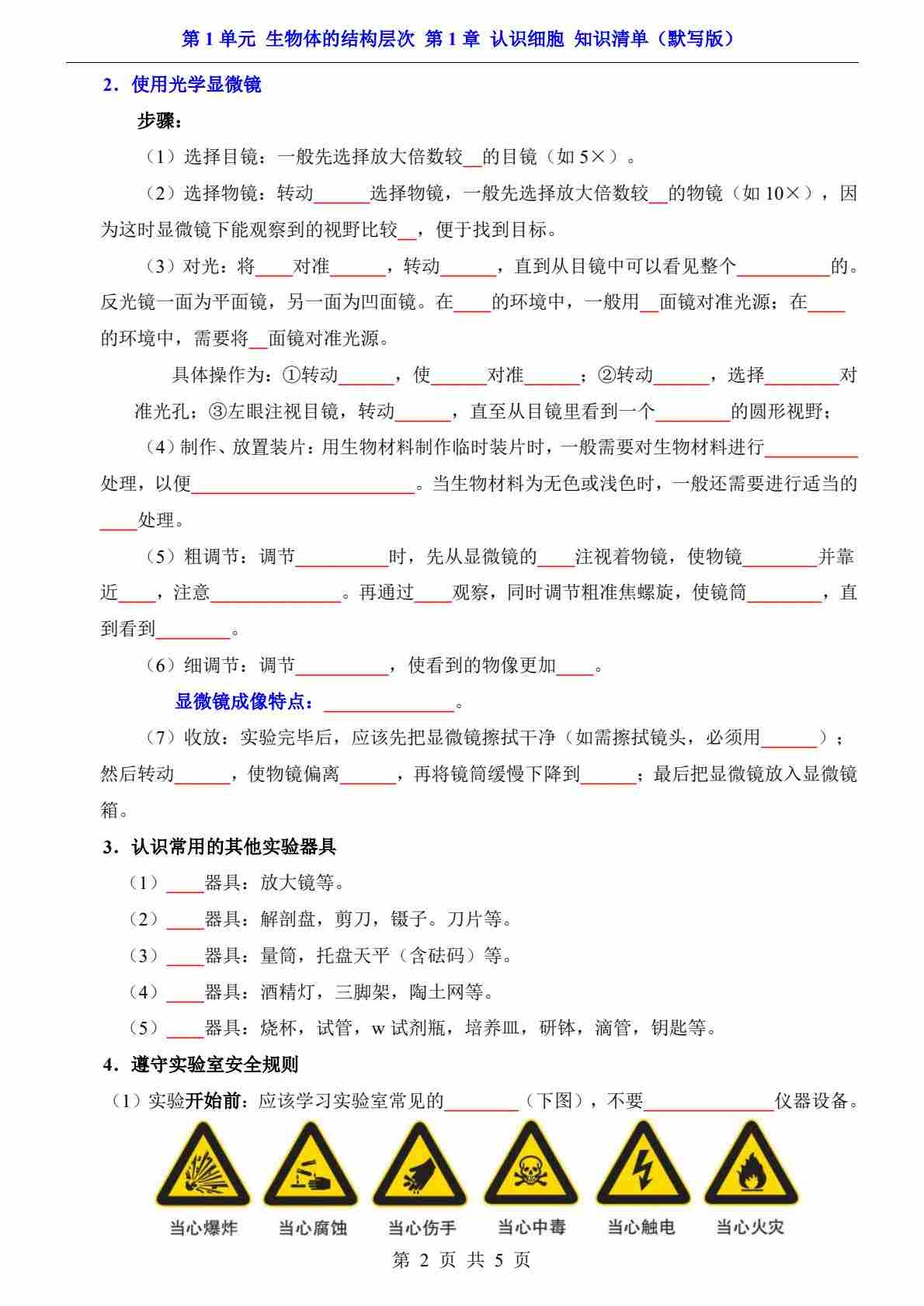 首页 > 全部 > 知识梳理 > 第1单元 第1章 认识细胞(知识清单-默写版)