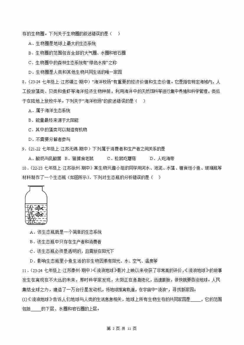 首页 > 全部 > 期中专项 > 专题03 生态系统和生物圈(原卷版)