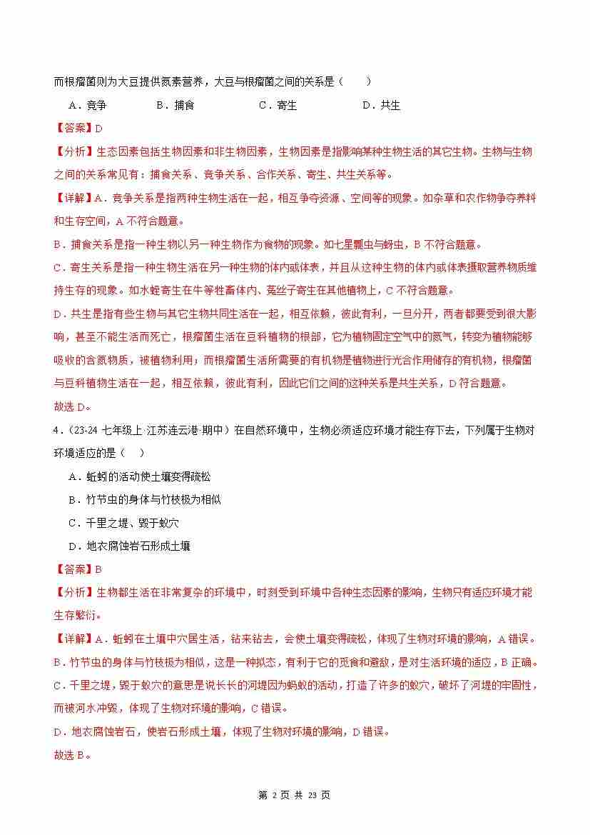 首页 > 全部 > 期中专项 > 专题02 生物与环境(苏科版)(解析版)