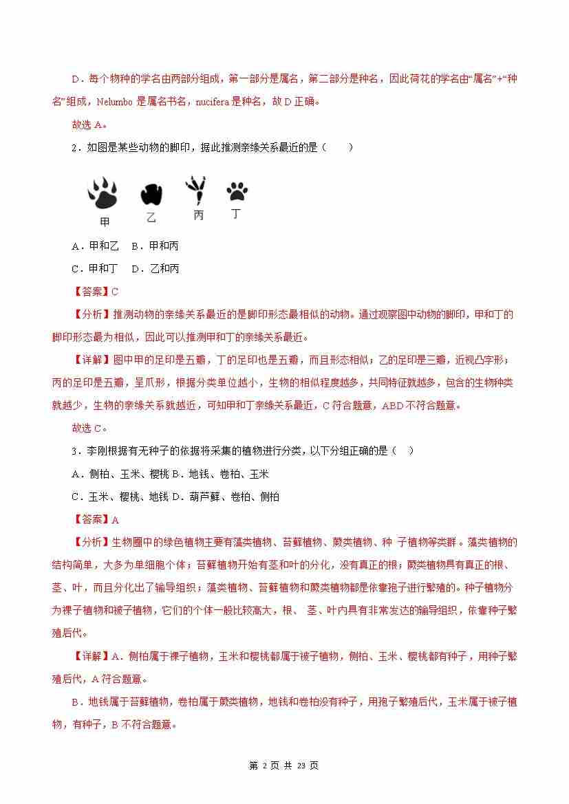 首页 > 全部 > 单元测试 > 第6章 生物的命名与分类【B卷·培优卷】(解析版)-七年级生物上册生物(苏科版2024)