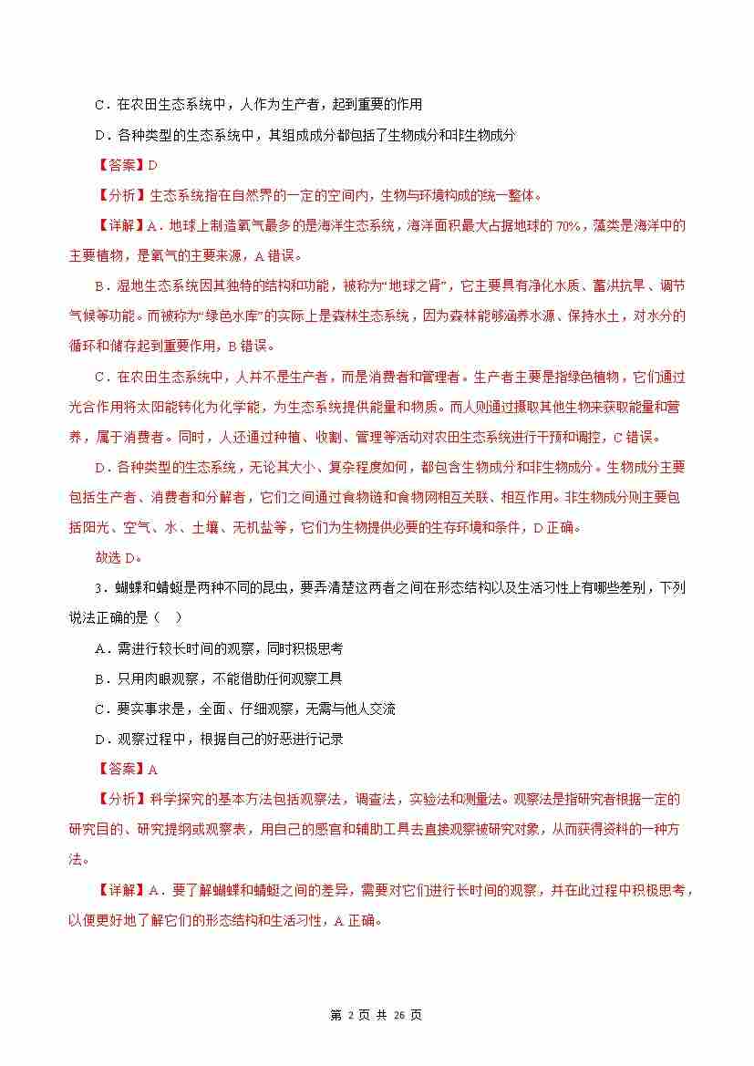 首页 > 全部 > 单元测试 > 第3章 生态系统和生物圈【B卷·培优卷】(解析版)-七年级生物上册生物(苏科版2024)