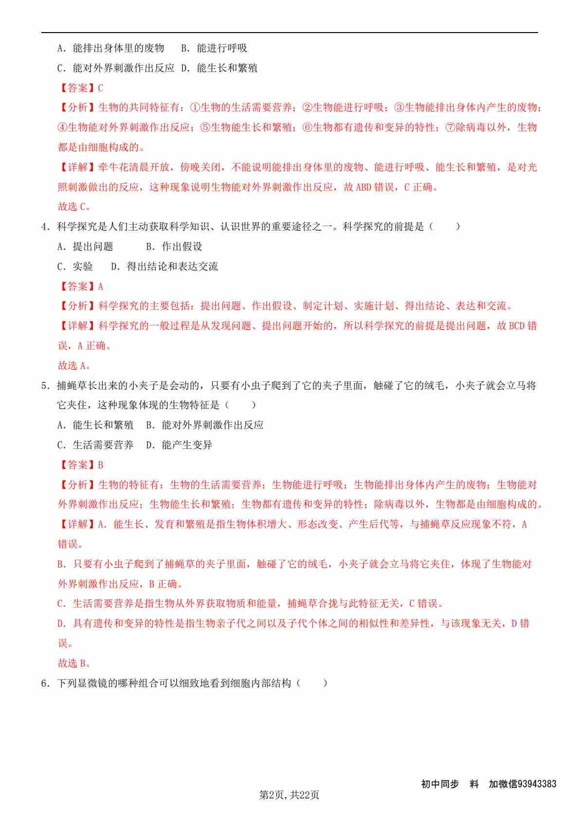 首页 > 全部 > 第三次月考 > 七年级苏科生物第三次月考卷(全解全析)