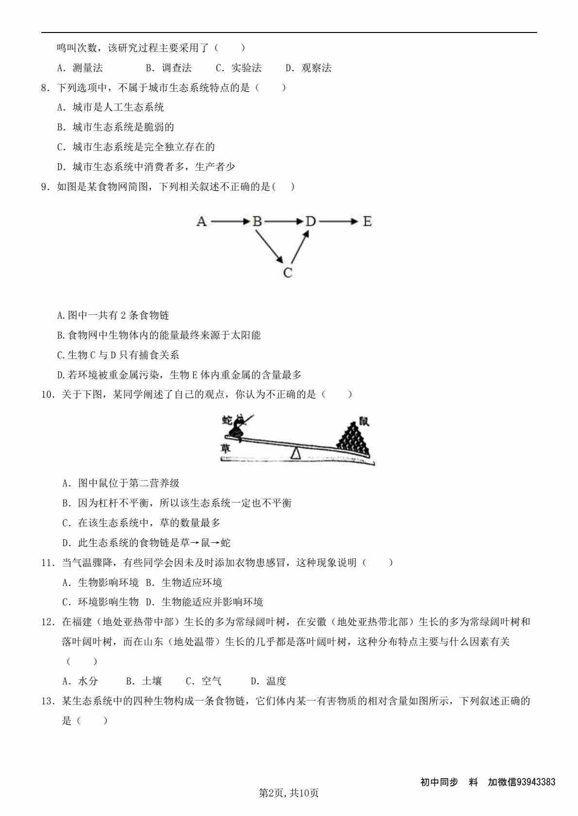 首页 > 全部 > 第三次月考 > 七年级苏科生物第三次月考卷【测试范围:第一~三单元】