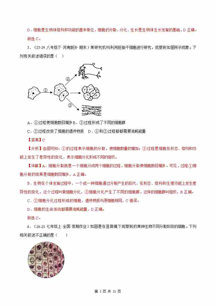 首页 > 全部 > 能力提升卷 > 第5章 生物体有相似的结构层次【测试卷】(解析版)-七年级生物上册生物(苏科版2024)