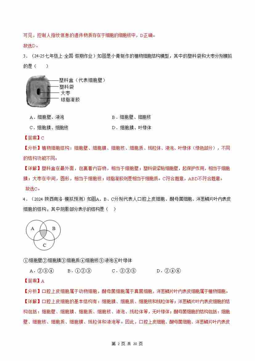 首页 > 全部 > 能力提升卷 > 第4章 生物体有相同的基本结构【测试卷】(解析版)-七年级生物上册生物(苏科版2024)