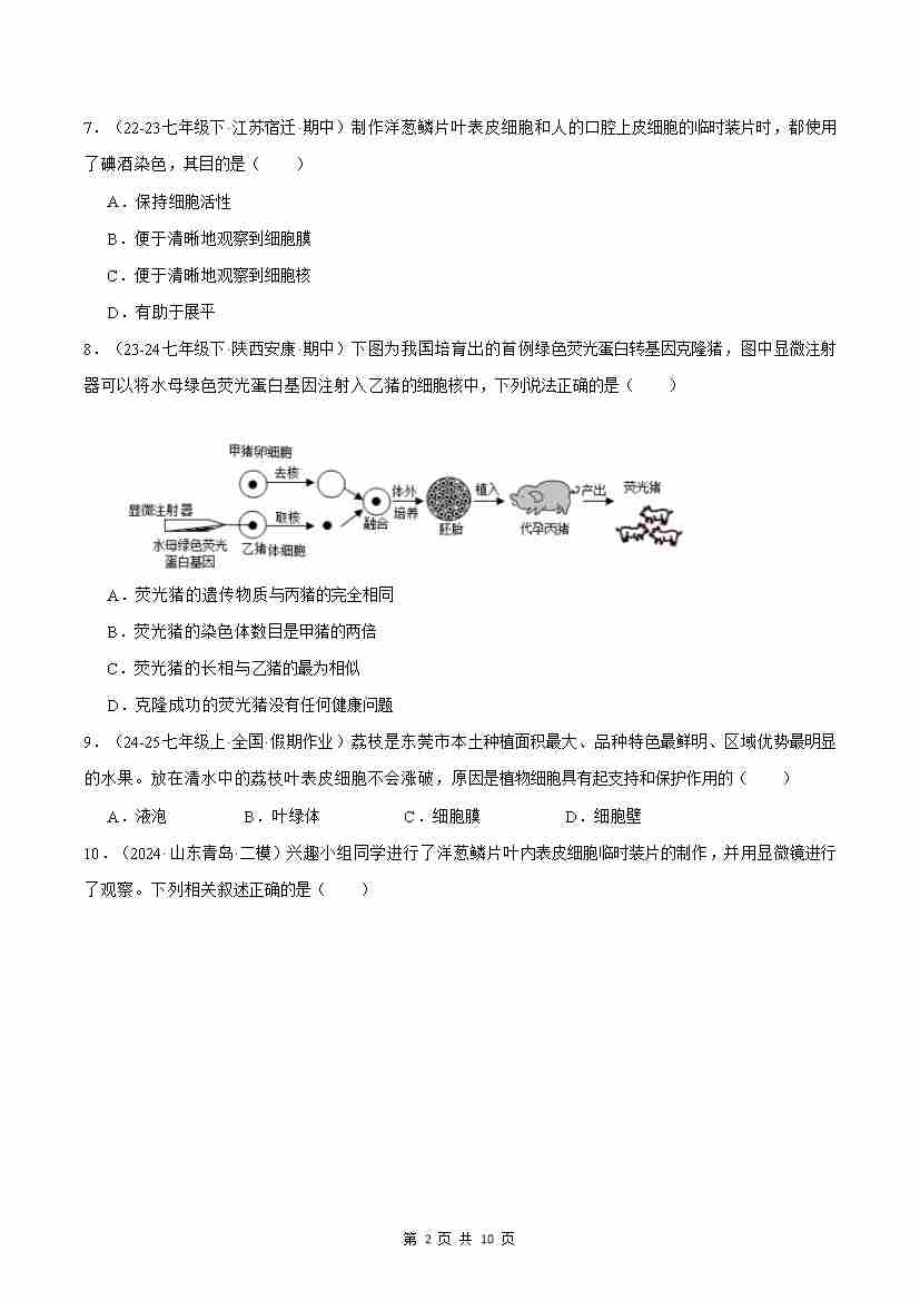 首页 > 全部 > 能力提升卷 > 第4章 生物体有相同的基本结构【测试卷】(原卷版)-七年级生物上册生物(苏科版2024)