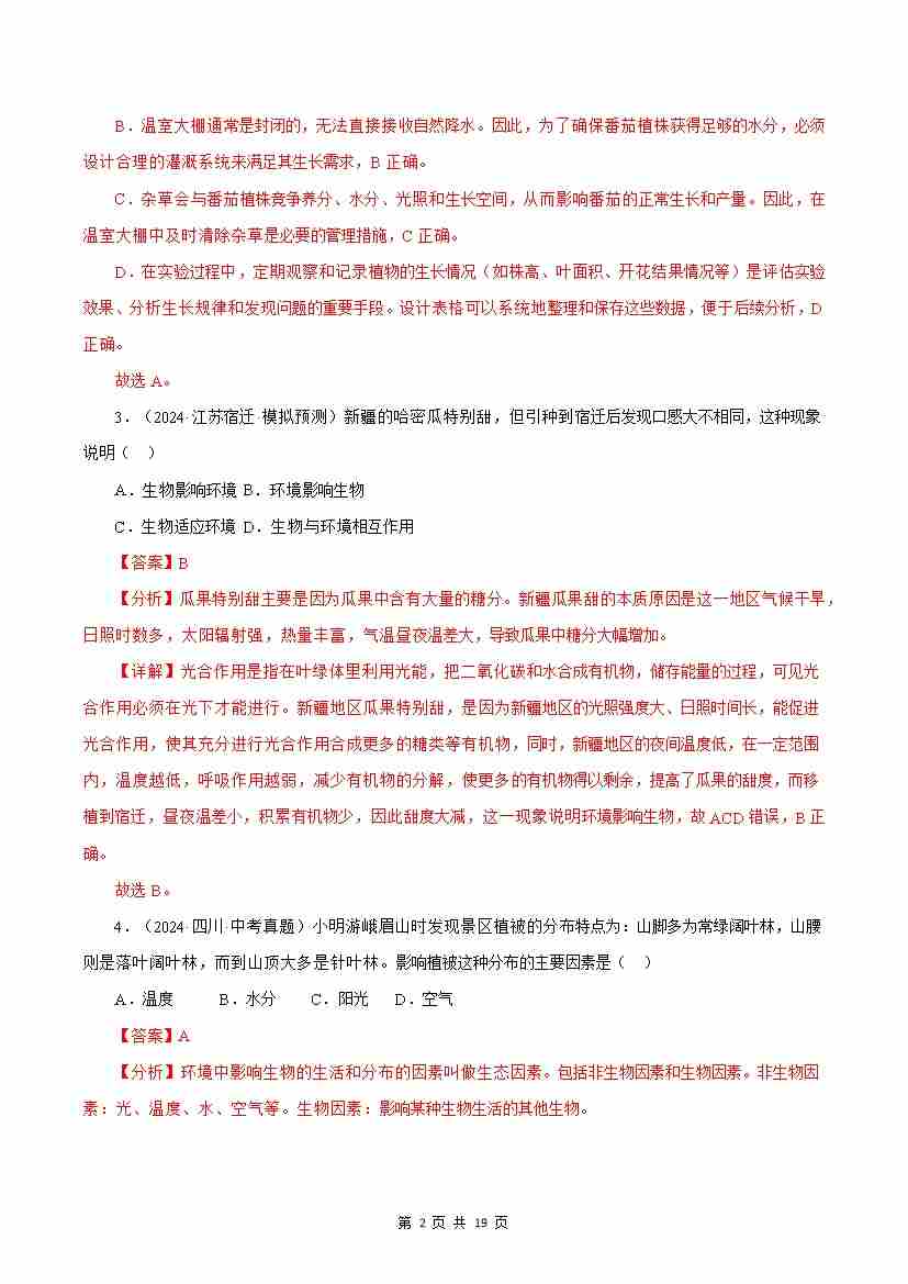 首页 > 全部 > 能力提升卷 > 第2章 生物与环境【测试卷】(解析版)-七年级生物上册生物(苏科版2024)