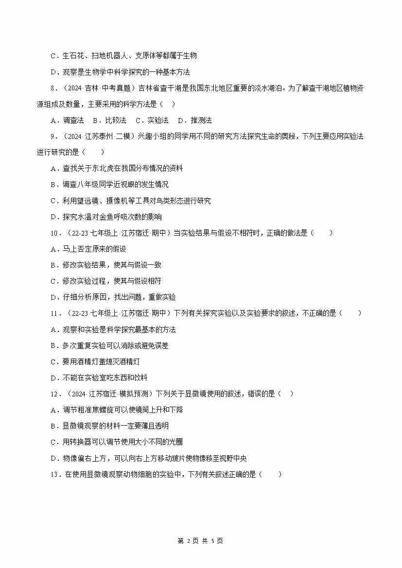 第1章 生物学——研究生命的科学【测试卷】(原卷版)-七年级生物上册生物(苏科版2024)