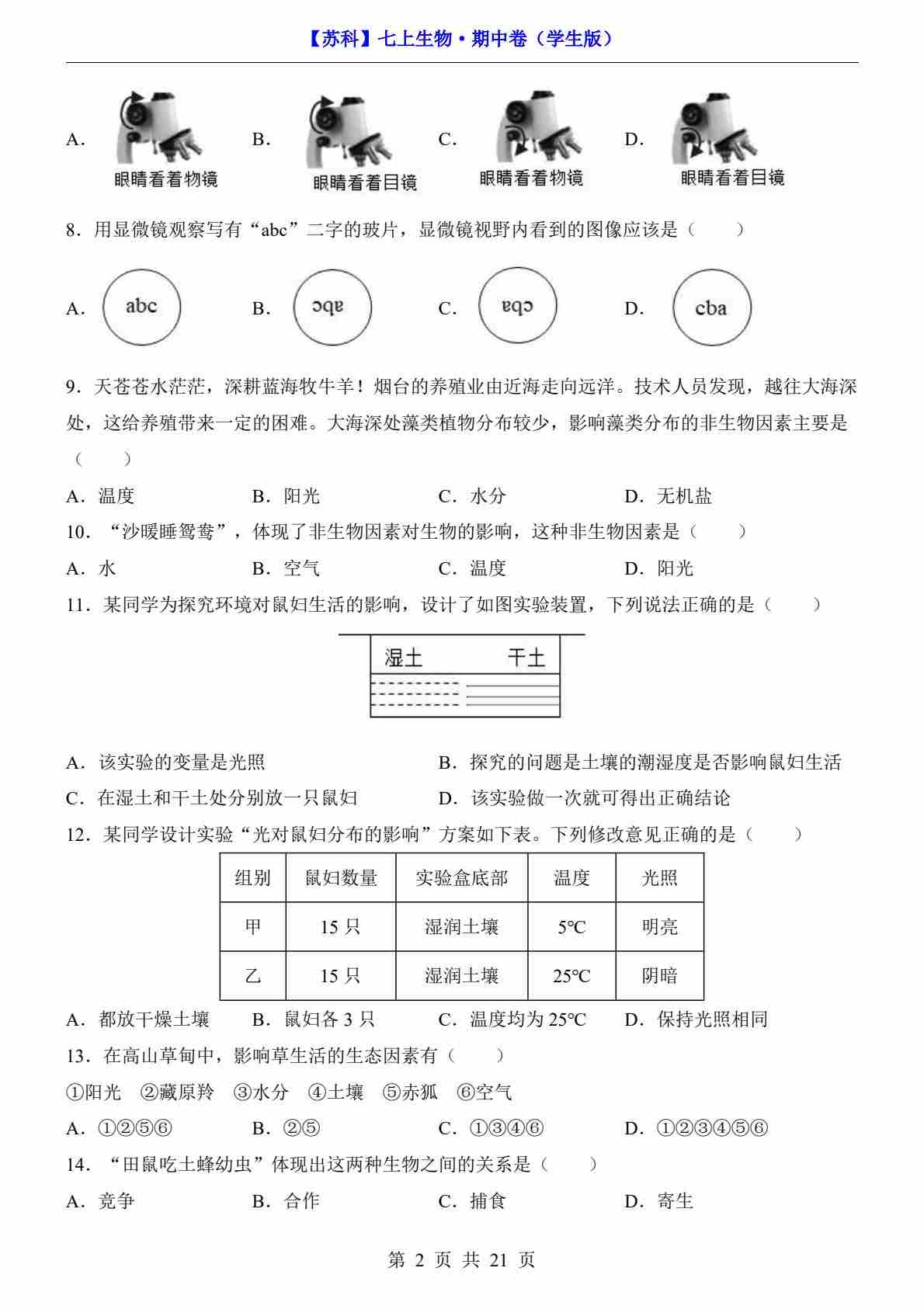 首页 > 全部 > 期中试卷 > 【苏科】7上生物期中卷【第1-3章】