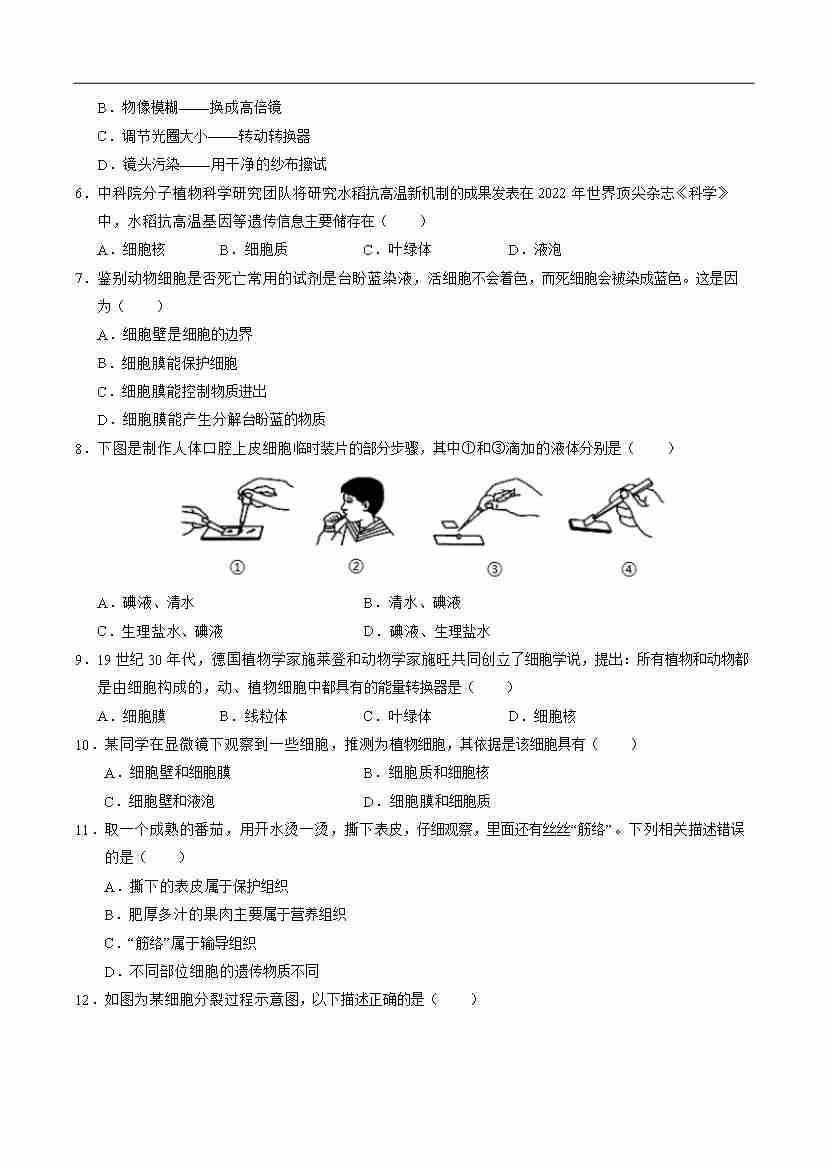 首页 > 全部 > 期中试卷 > 七年级生物期中模拟卷(考试版A4)(苏教版2024)