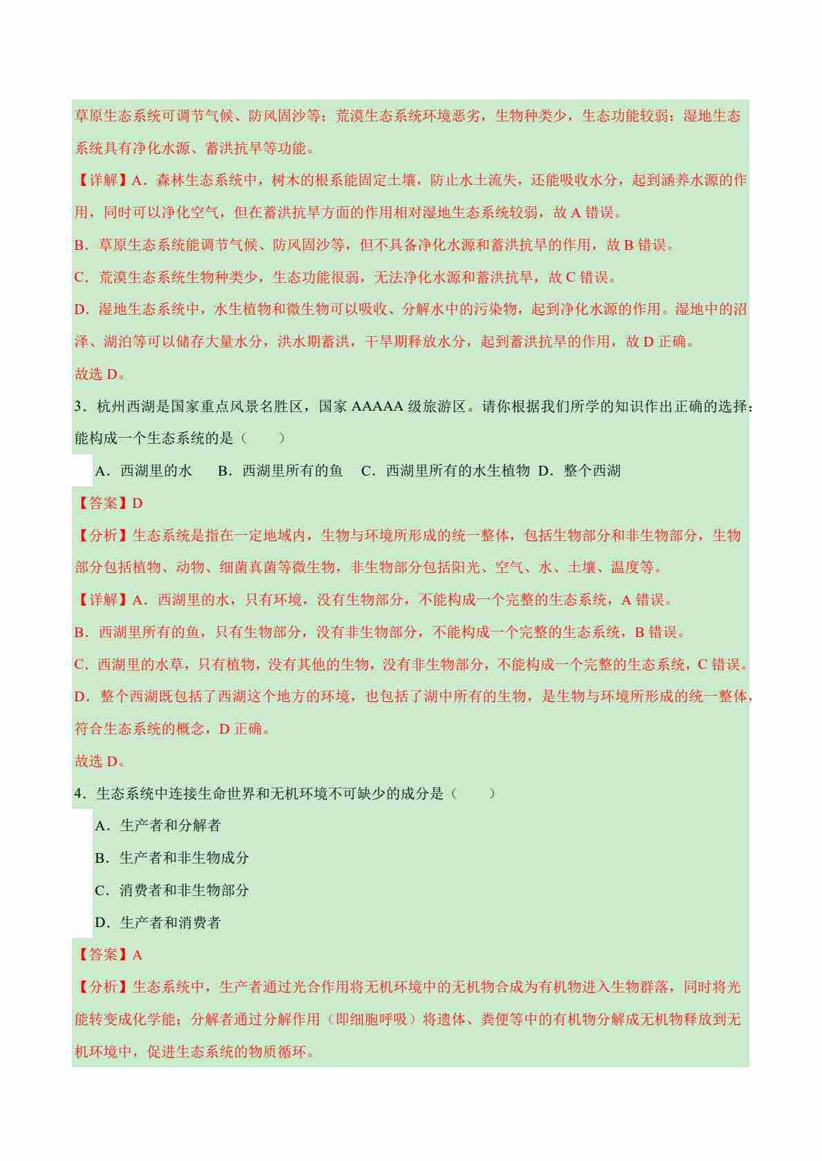 首页 > 全部 > 期中专项 > 【期中专题训练】第三章 生物系统和生物圈(考题猜想50题)(解析版)