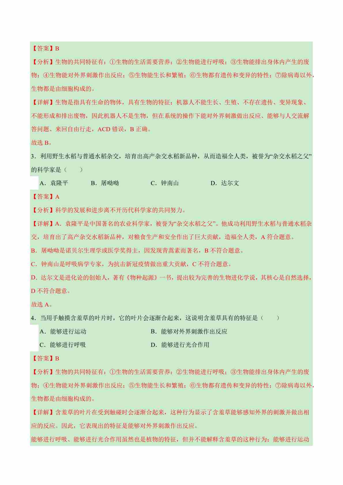 首页 > 全部 > 期中专项 > 【期中专题训练】第一章 生物学——研究生命的科学(考题猜想50题)(解析版)