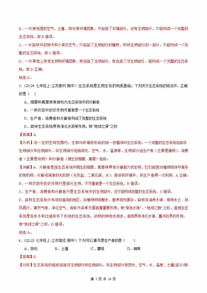 首页 > 全部 > 期中专项 > 专题03 生态系统和生物圈--(解析版)