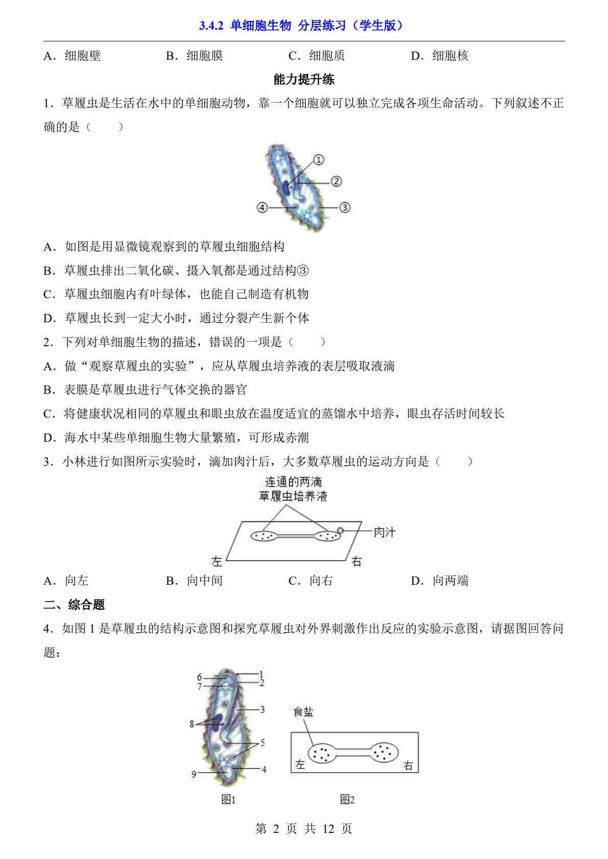 首页 > 全部 > 一课一练 > 3.4.2 单细胞生物(分层练习)