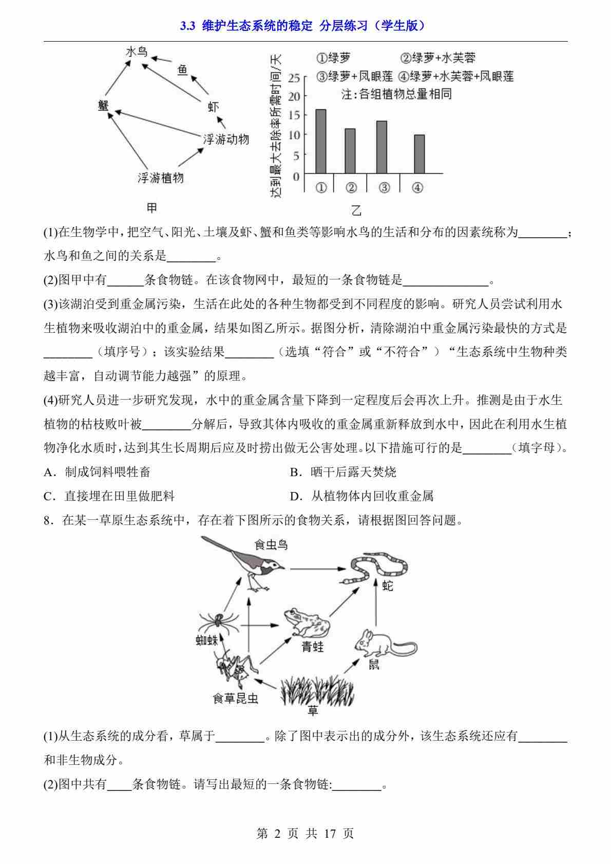 首页 > 全部 > 一课一练 > 3.3 维护生态系统的稳定(分层练习)