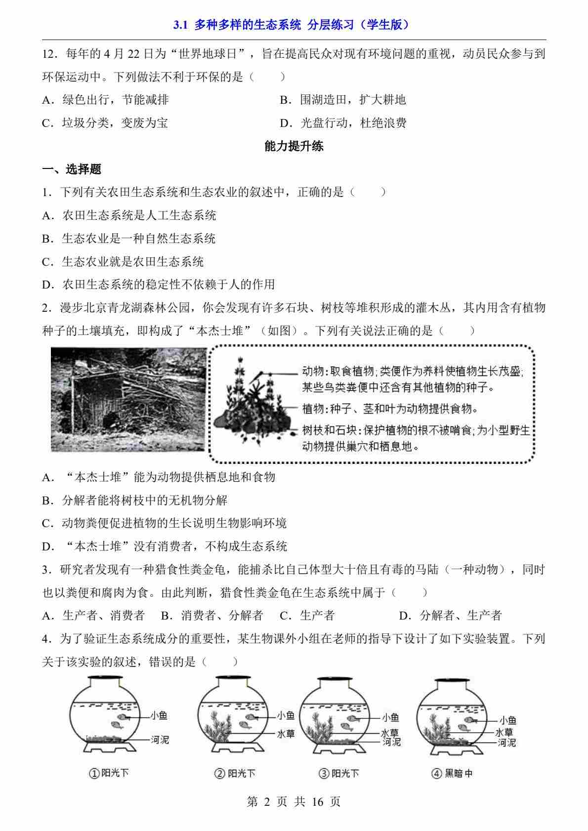 3.1 多种多样的生态系统(分层练习)