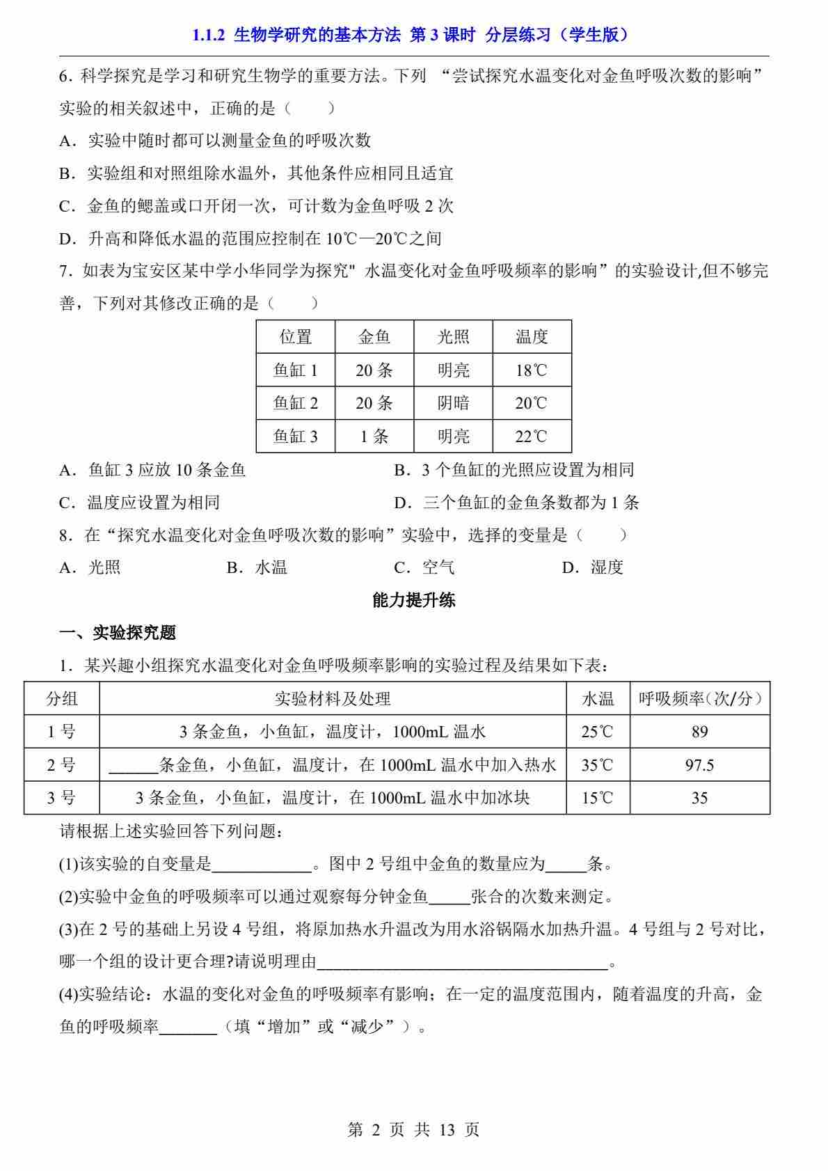 首页 > 全部 > 一课一练 > _1.1.2 生物学研究的基本方法 第3课时(分层练习)
