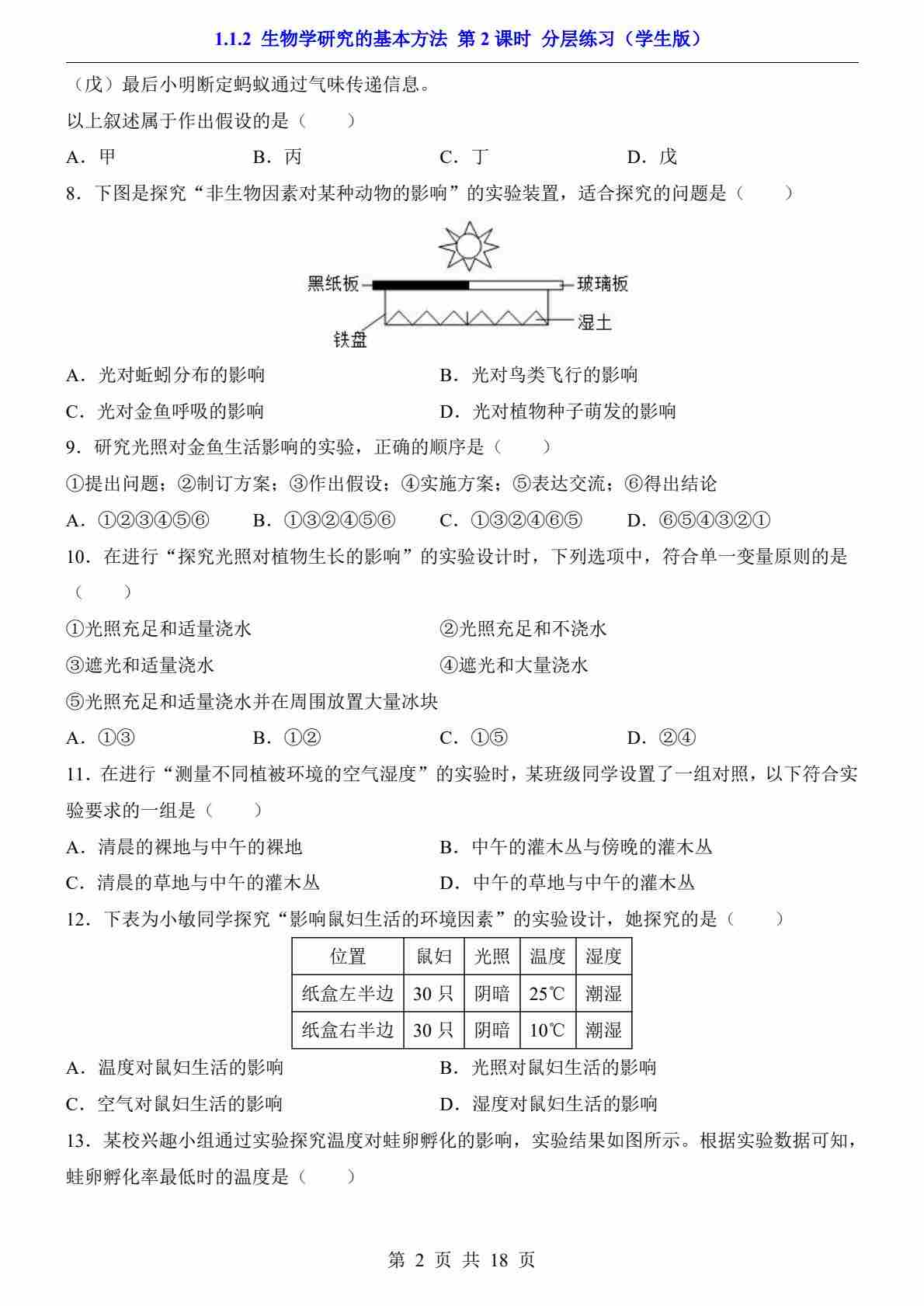 首页 > 全部 > 一课一练 > _1.1.2 生物学研究的基本方法 第2课时(分层练习)