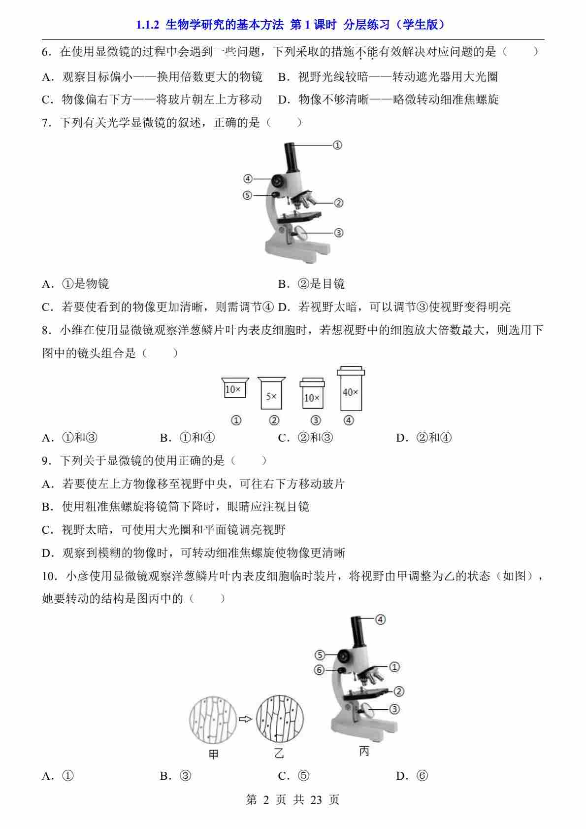 首页 > 全部 > 一课一练 > _1.1.2 生物学研究的基本方法 第1课时(分层练习)