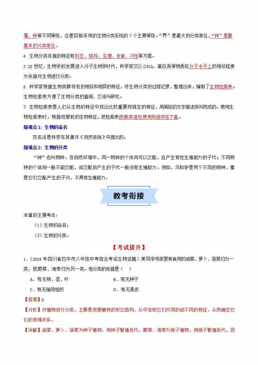 首页 > 全部 > 知识清单 > 第6章 生物的命名与分类【速记清单】(解析版)-七年级生物上册生物(苏科版2024)