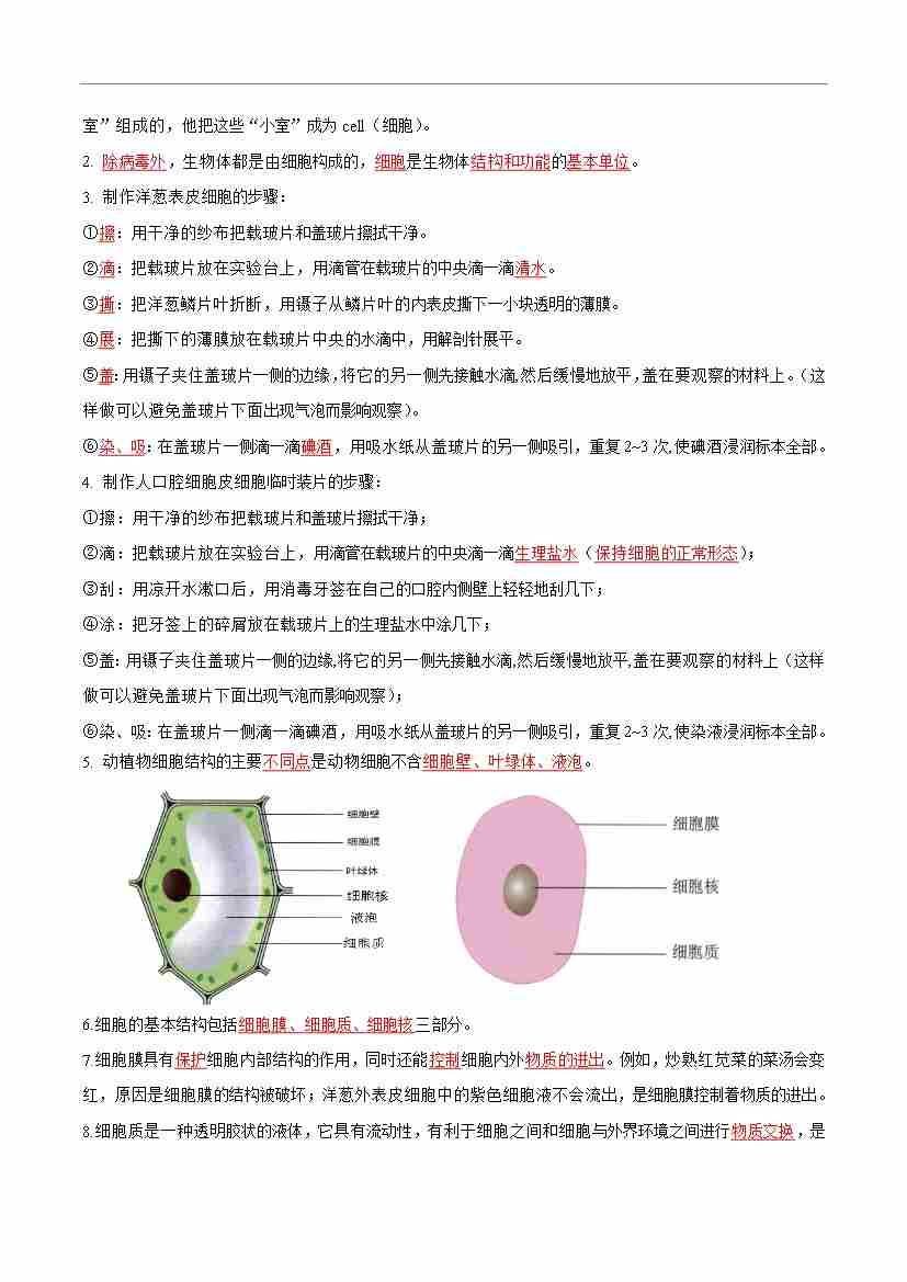 首页 > 全部 > 知识清单 > 第4章 生物体有相同的基本结构【速记清单】(解析版)-七年级生物上册生物(苏科版2024)