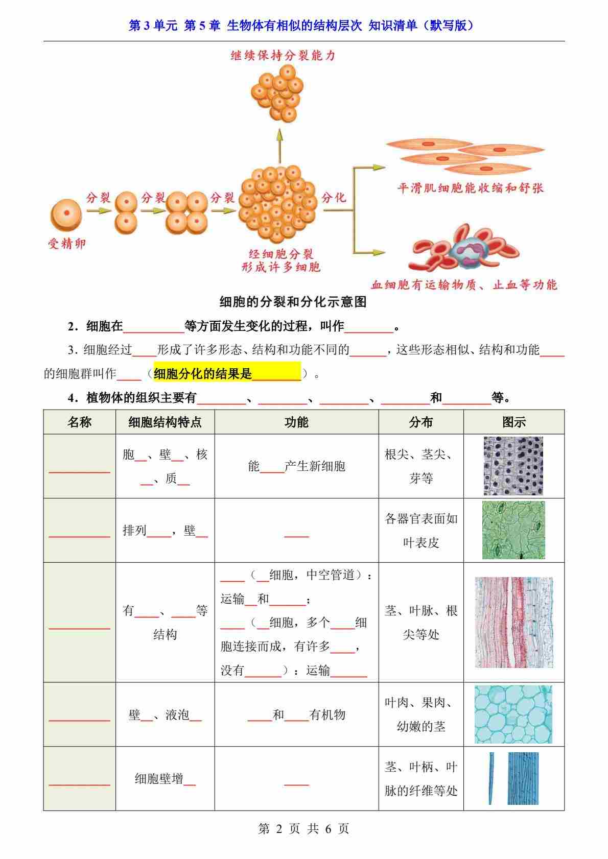 首页 > 全部 > 知识梳理 > 第3单元 第5章 生物体有相似的结构层次(知识清单-默写版)