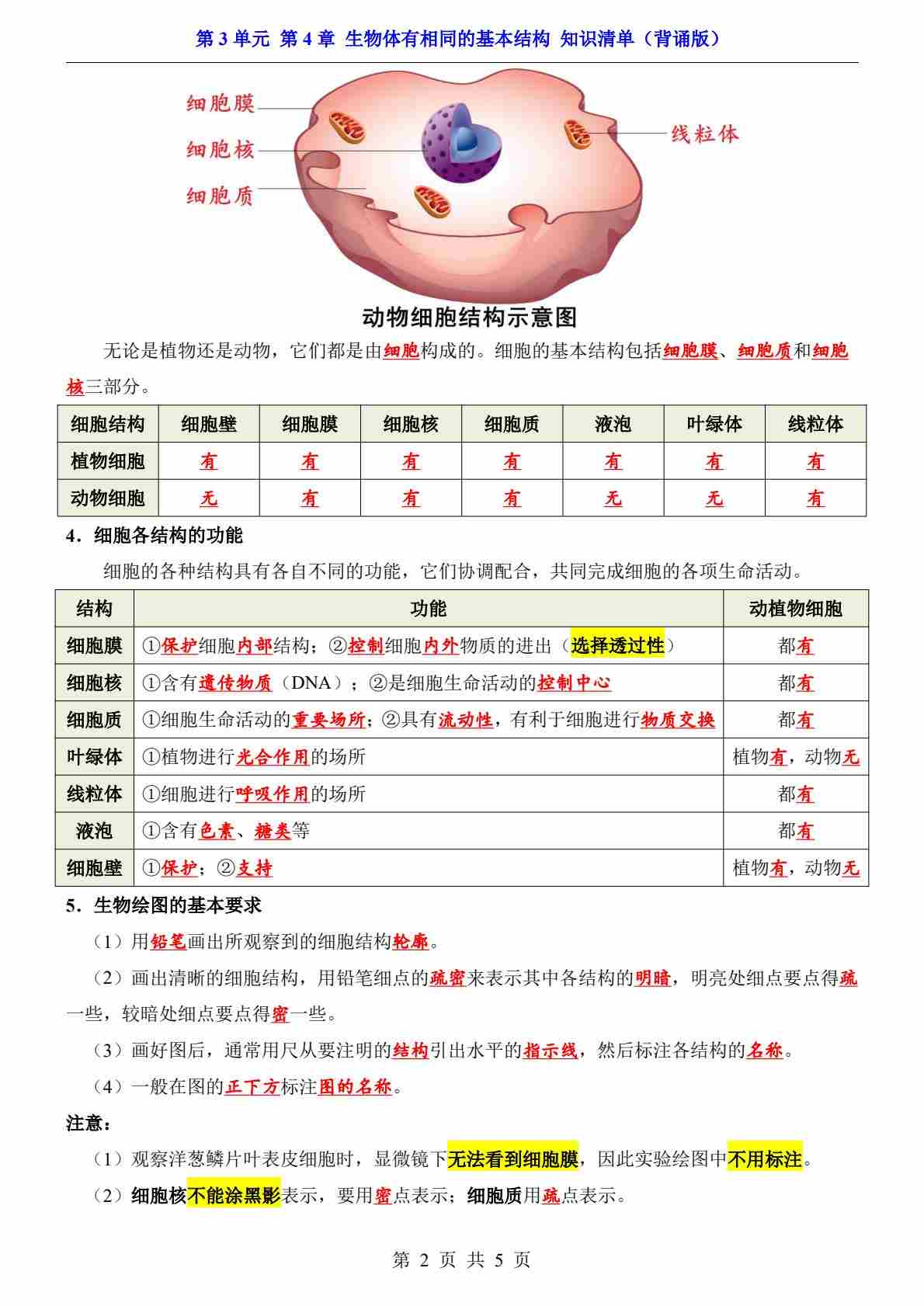 首页 > 全部 > 知识梳理 > 第3单元 第4章 生物体有相同的基本结构(知识清单-背诵版)