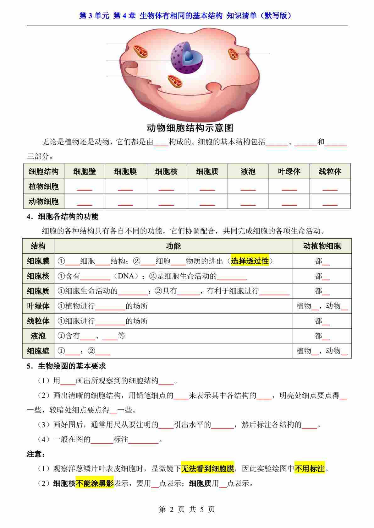 首页 > 全部 > 知识梳理 > 第3单元 第4章 生物体有相同的基本结构(知识清单-默写版)