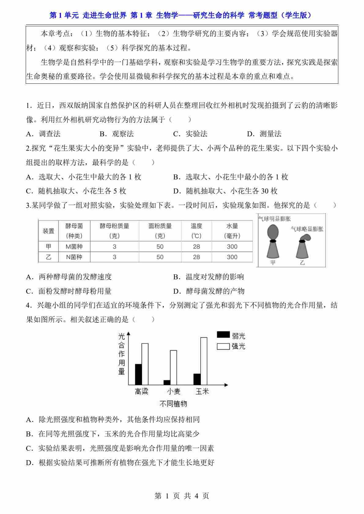第1单元 第1章 生物学—研究生命的科学(常考题型)