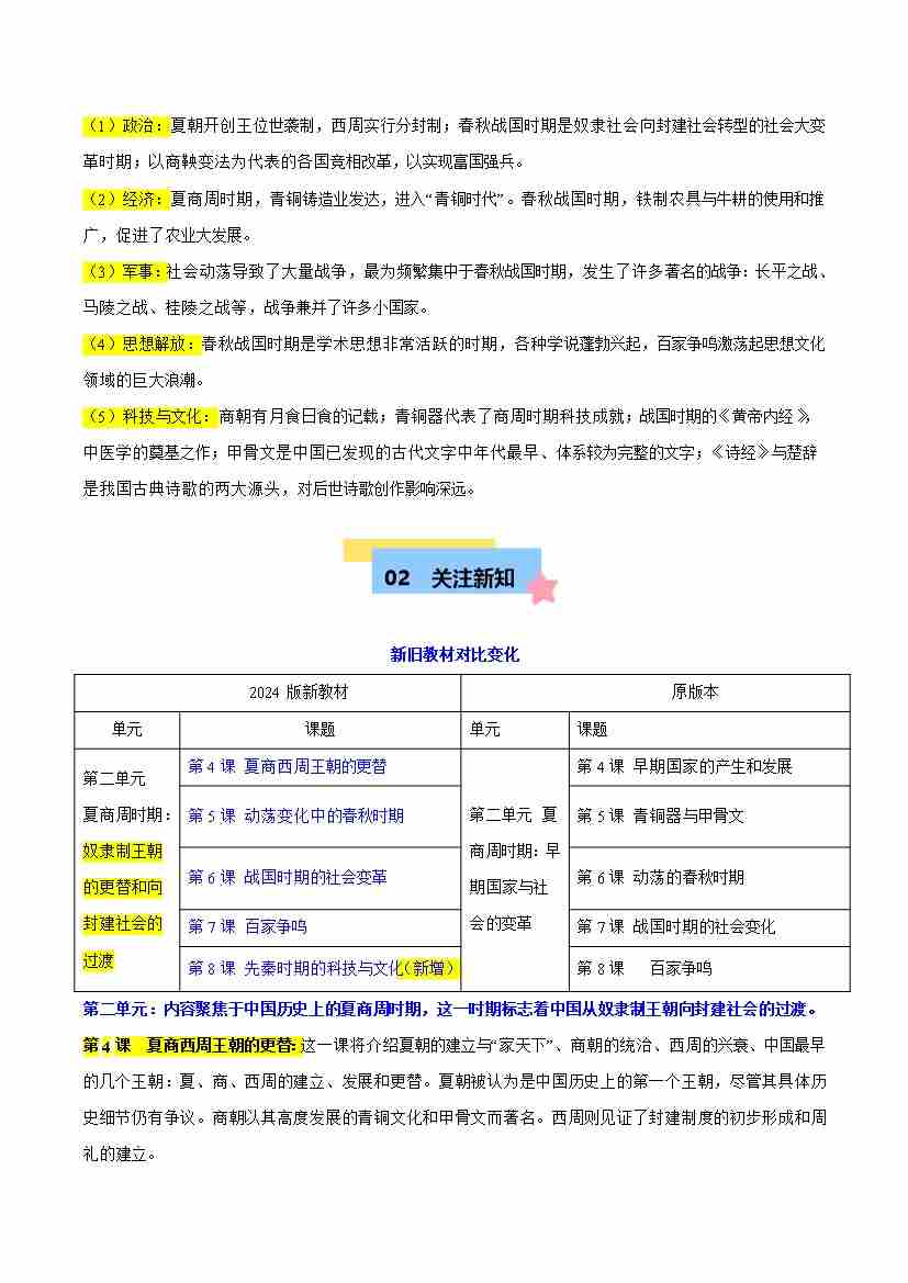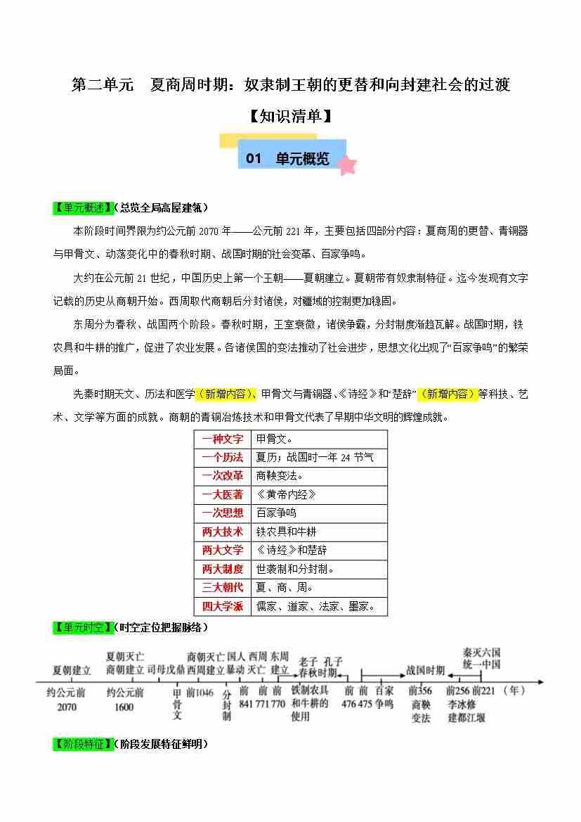 第二单元 夏商周时期:奴隶制王朝的更替和向封建社会的过渡【速记清单】-2024-2025学年七年级历史上册单元速记·巧练(统编版2024)