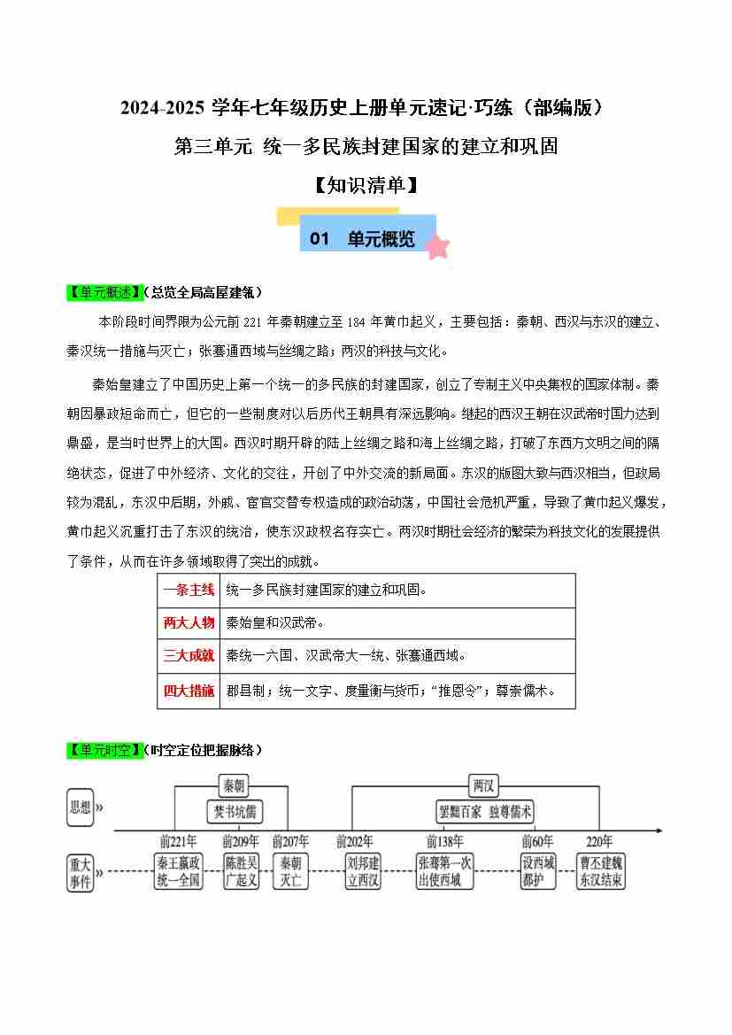 首页 > 全部 > 速记清单 > 第三单元 统一多民族封建国家的建立和巩固【速记清单】-2024-2025学年七年级历史上册单元速记·巧练(统编版2024)