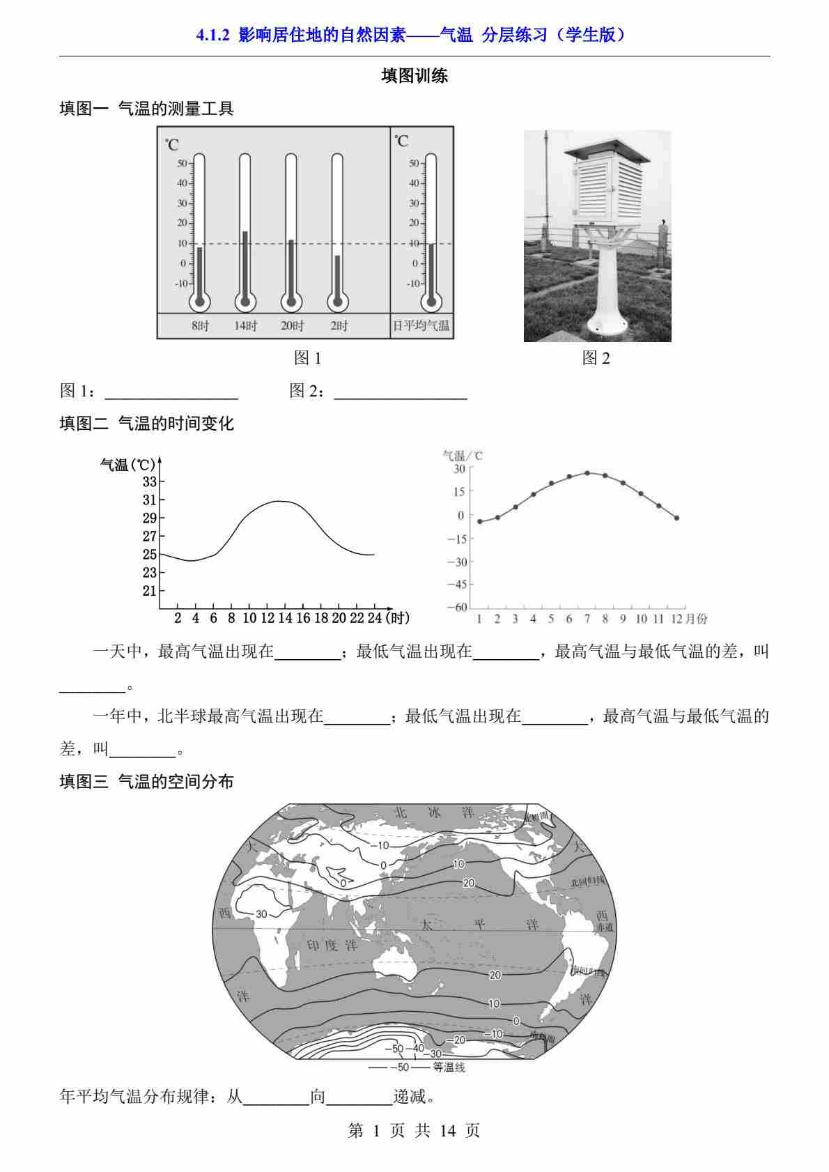 4.1.2.1 影响居住地的自然因素——气温 分层练习